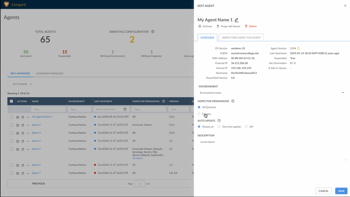 Agents are the engine that power this process, allowing Liongard to extract data from hardware devices and display the data on our product, enabling users to perform powerful actions on the data Liongard brings back.